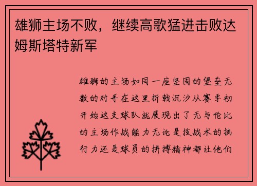 在本赛季的激烈竞争中,霍芬海姆凭借一场关键的客场胜利,成功提升了他们在联赛中的排名。这场比赛不仅展现了球队的实力,更是为整个赛季奠定了一个稳固的基础。霍芬海姆的成功并非偶然,而是基于全队上下的精心准备和战术执行。 这场胜利的背后离不开教练团队的出色战术布置。霍芬海姆的主教练深知,客场作战的难度不容小觑,特别是在面对实力相当的对手时,任何细微的疏忽都可能导致败局。因此,在赛前的准备工作中,教练团队对...